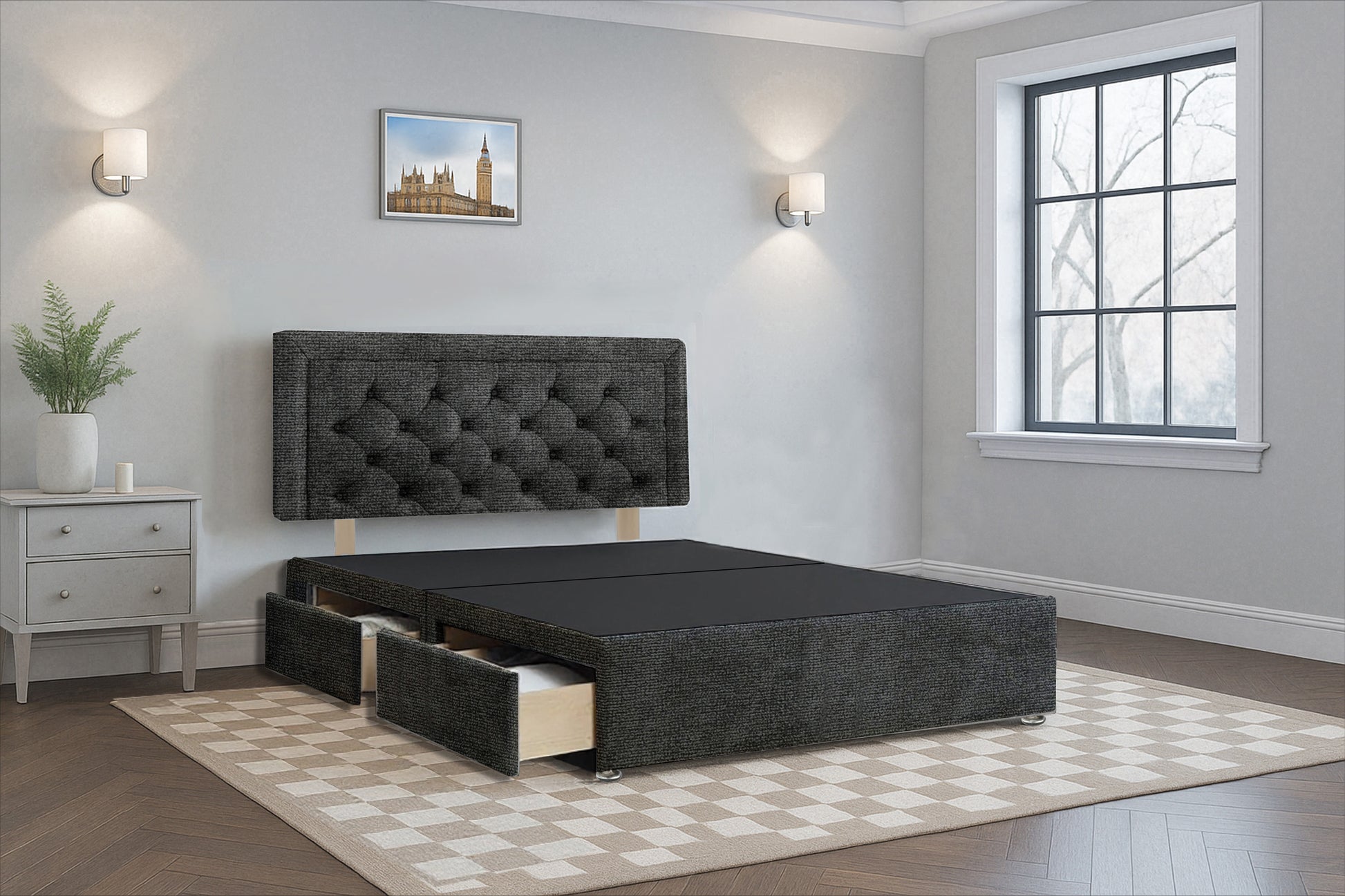 Belarus Aires Divan Bed Frame with Hardboard Base & Storage Drawers – Custom Size & Mattress